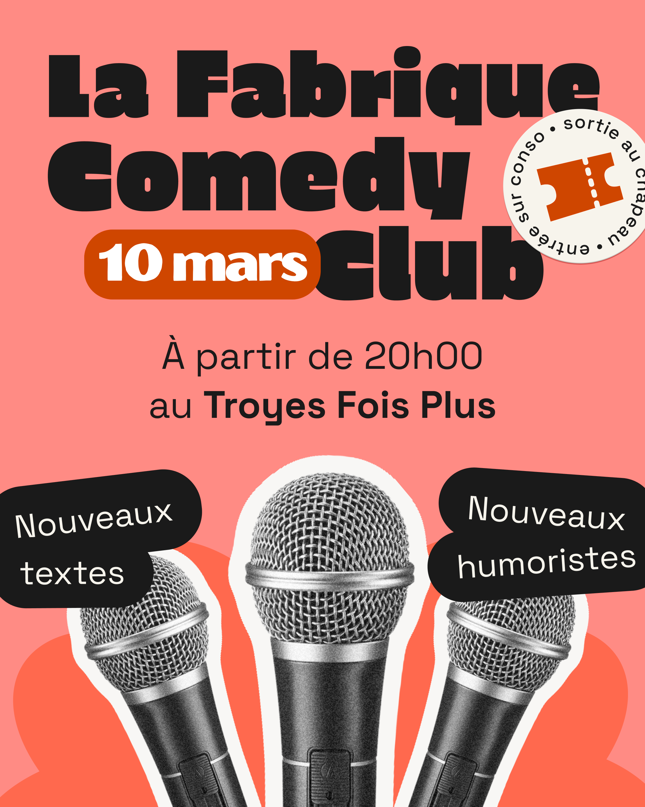 La Fabrique Comedy Club fait sa rentrée au 3X+ le 10/03 à partir de 20h15 !