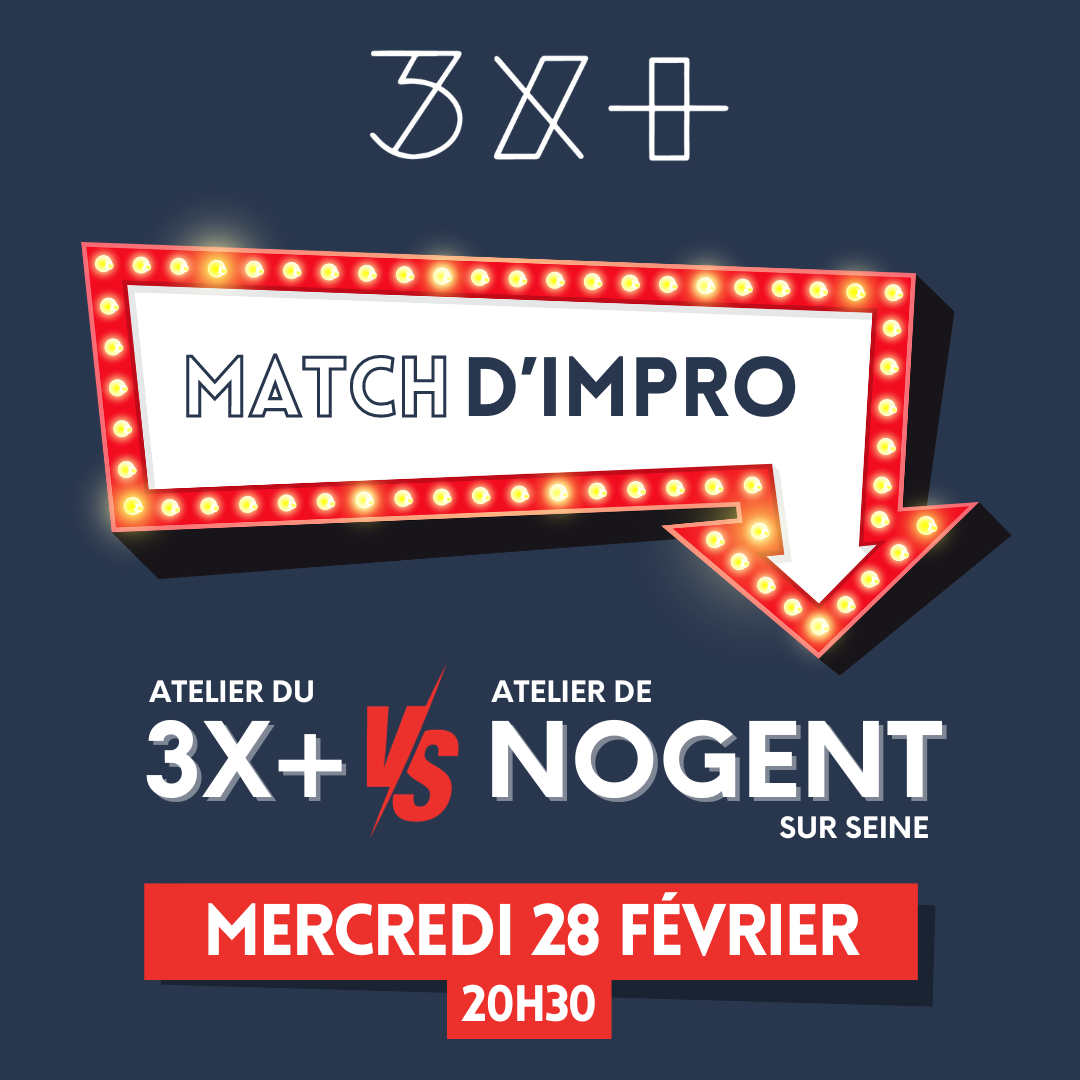Nous sommes ravis d’accueillir la troupe de Nogent pour un match d’improvisation avec notre atelier du 3X+ animé par Nadia Marchais.