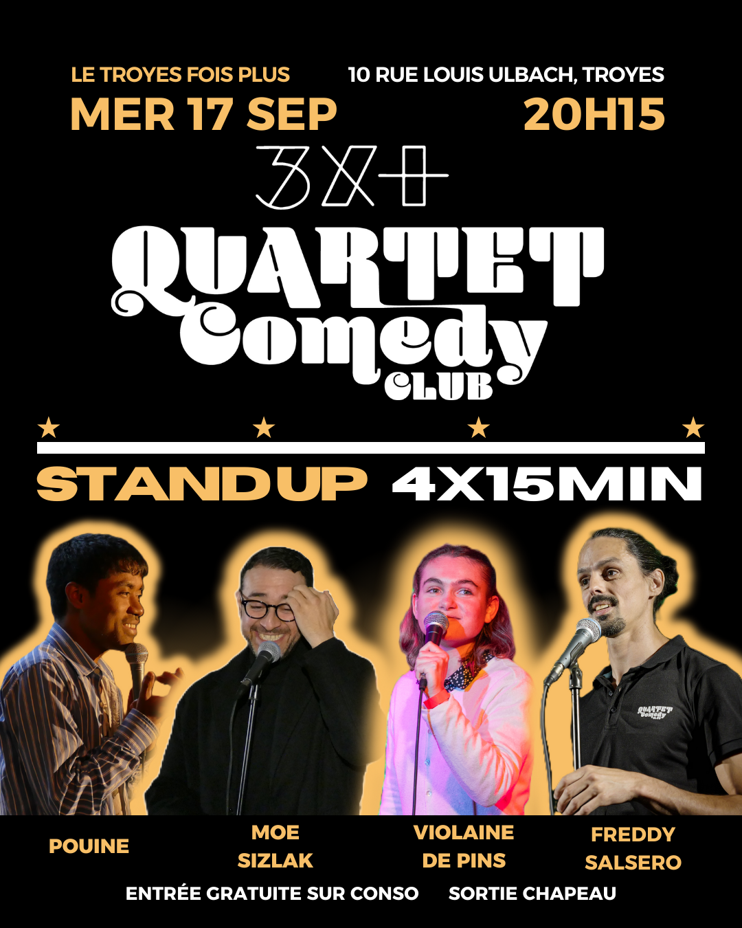 Venez découvrir le monde du stand-up, 4 humoristes vont vous déchaîner, un seul objectif : te faire pleurer de rire