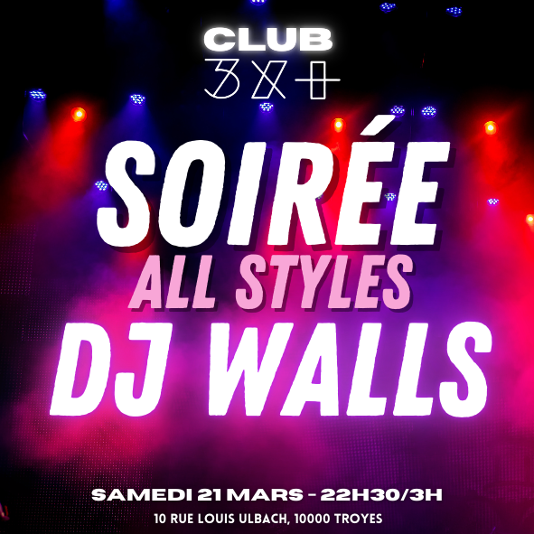 Préparez-vous à une soirée All Styles explosive ! DJ Walls vous fera voyager à travers tous les genres musicaux, des hits incontournables aux sons les plus actuels, pour danser et vibrer toute la nuit dans une ambiance de folie !