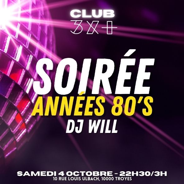 De retour dans les années 80 avec DJ Will derrière les platines qui va nous faire vivre une soirée de folie avec les meilleurs sons de la meilleure époque !